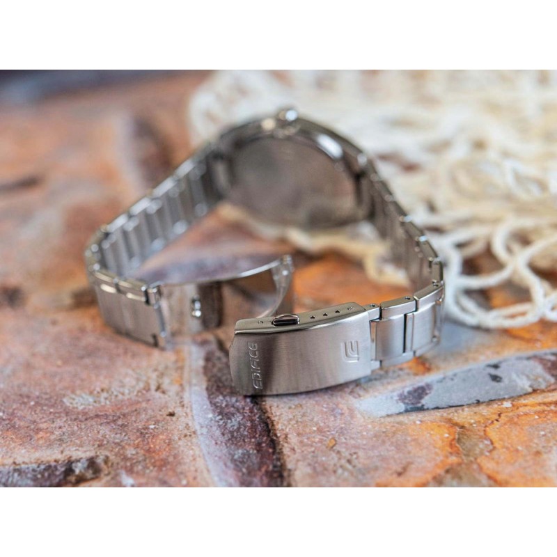 Casio Edifice EFB-109D-2AVEF – це елегантний годинник, розроблений для чоловіків, які цінують поєднання стилю, довговічності та сучасних рішень. Ця модель вирізняється своїм позачасовим дизайном та високоякісним виготовленням, завдяки чому вона чудово виглядає як з офіційним костюмом, так і з повсякденним одягом. Міцний корпус з нержавіючої сталі та відповідний браслет класичного сріблястого кольору створюють цілісний та елегантний цілісний образ. Практична застібка-метелик гарантує комфортне носіння та безпеку в будь-якій ситуації.