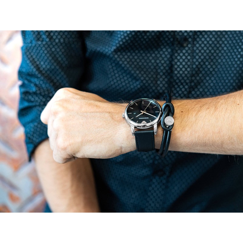 Чоловічий годинник Emporio Armani Luigi AR80059 ідеально відображає поєднання майстерності та технологій. Всередині є кварцовий механізм, який не клопіт, просто потрібно час від часу міняти батарейку. Корпус з високоякісної сталі представляє гармонійний баланс між мінімалістичним дизайном і елегантними деталями. Чорний циферблат прикрашений вертикальними індексами, які відображають тонкі відблиски світла. Додаткове вікно дати непомітне, але функціональне. Чорний ремінець з натуральної шкіри ідеально доповнює елегантний характер годинника. У комплект входить чорний шкіряний браслет зі сталевою застібкою, підійде на зап'ястя до 17 см. Комбінація годинника та браслета створює надзвичайно цілісний і стильний набір, який ідеально підходить для офіційних заходів і вечірок. Emporio Armani Luigi AR80059 упакований в елегантну коробку, яка чудово підійде в якості подарунка.