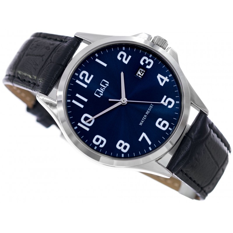 Q&Q A480J305Yстане гарним вибором для чоловіка, який шукає класичний годинник із датою. Темно-синій розбірливий циферблат має чіткі чорні цифри годин. Все захищеномінеральним склом. Сріблястий конверт кріпиться на зручний ремінець з екошкіри. Ця модель ідеально підходить нащоденьзавдяки поєднанню завжди модних і стриманих кольорів.