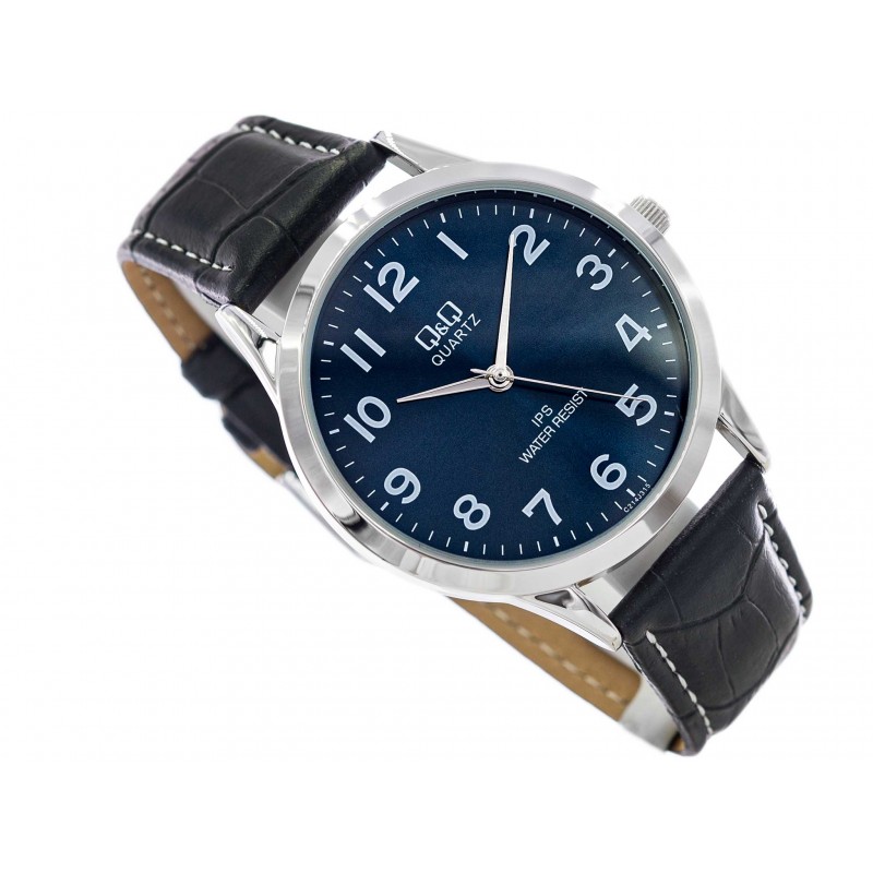 Q&Q C214J315Y це годинник, створений для любителів класики. Великий корпус повісили на ремінець з екошкіри, який через деякий час ідеально прилягає до зап'ястя. Темно-синій аналоговий циферблат контрастує з індексами та стрілками для очікуваної читабельності та чіткості. Крім того, він захищений мінеральним склом. Не менш важливим є той факт, що всередині працює японський кварцовий механізм зі змінним акумулятором. Стримана кольорова гама надає виробу універсальності. Варто відзначити, що завдяки тонкому корпусу Q&Q C214J315Y успішно може служити костюмним годинником.