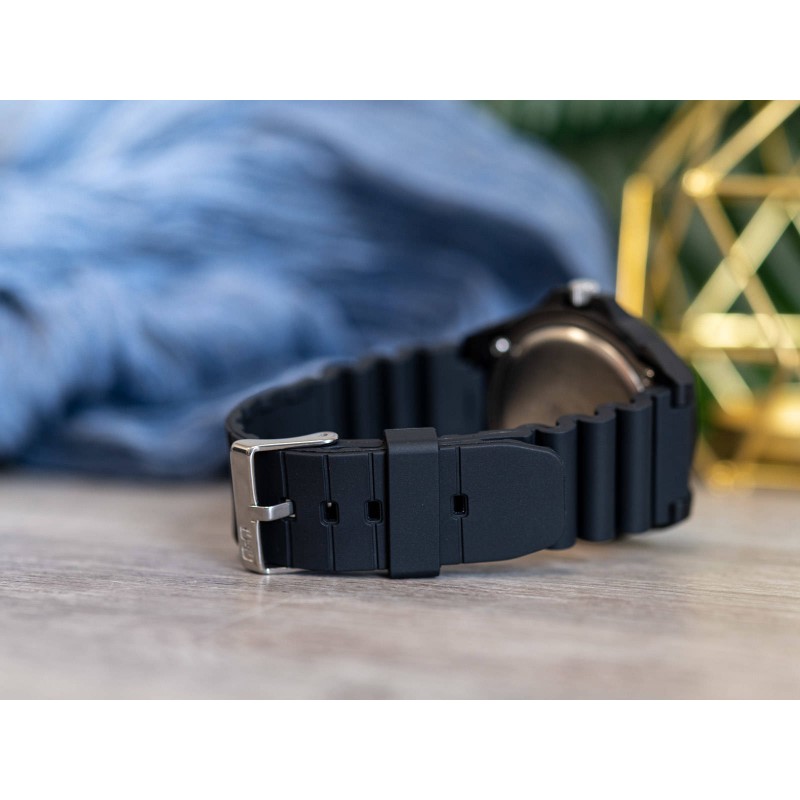 Q&Q V30A-002VYстане ідеальним доповненням до повсякденного або спортивного стилю. Ремінець і корпус виготовлені зпластикукласичного чорного кольору, що надає легкості всій конструкції. Стійке до зовнішніх факторів мінеральне скло захищає циферблат. Годинник оснащений японським кварцовим механізмом MIYOTA, який вважається надзвичайно точним. Клас водонепроникності 100M, тому ви можете легко плавати з годинником. Q&Q V30A-002VYстворено для любителів годинників у спортивному стилі.