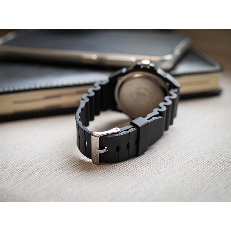 Q&Q VS44J003Yідеально підходить для повсякденного використання, поєднуючи функціональність і сучасний дизайн. Спортивний годинник Q&Q виготовлений іззручного пластикукласичного чорного кольору. Циферблат розбірливий і сповнений мінімалістичного шарму. Контрастні яскраві стрілки та годинникові мітки дозволяють легко читати час навіть при поганому освітленні. Акрилове скло, яке захищає циферблат і стійке до подряпин, завдяки чому годинник зберігає свою чіткість і естетичність протягом тривалого часу. І цифри, і стрілки мають люмінофорне покриття, тому після впливу світла вони деякий час світяться. Клас водонепроникності 100M, тому ви можете легко плавати з годинником на зап'ясті. Q&Q VS44J003Yідеально доповнить будь-який чоловічий стиль, додавши йому характеру та функціональності.
