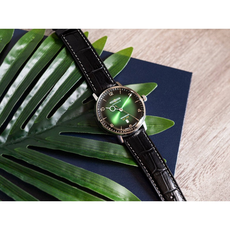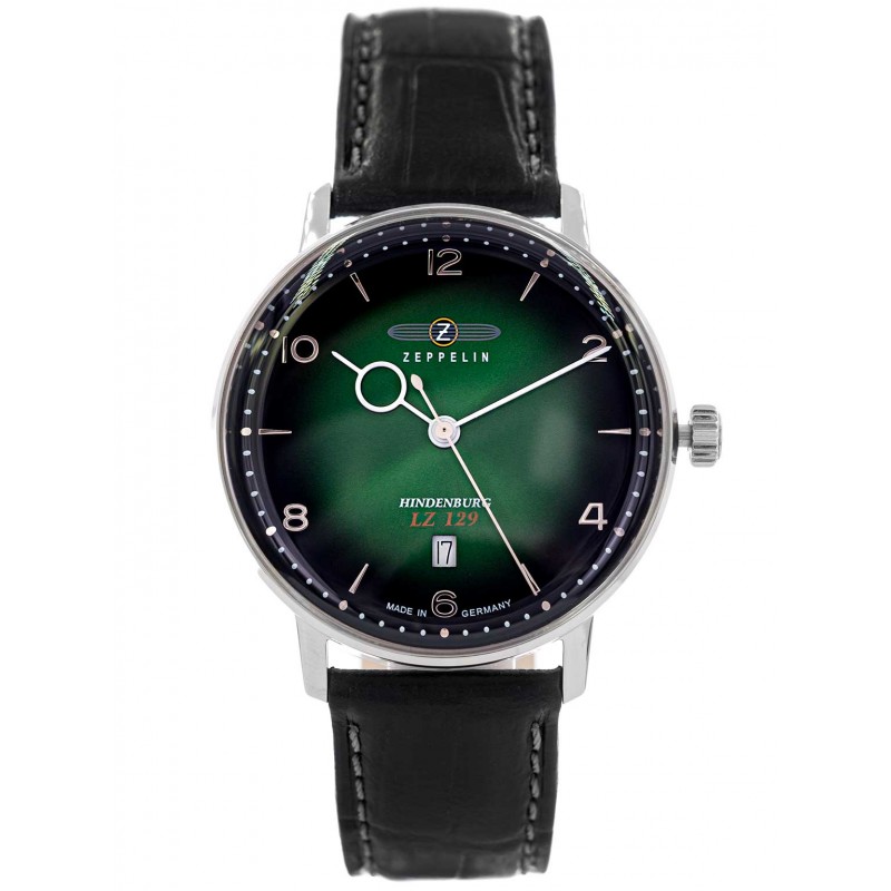 ZEPPELIN 8048-4 LZ-129 HINDENBURG - це пропозиція для любителів авіаційного натхнення, класичного стилю та сучасності. Оснащений кварцовим, точнимшвейцарським механізмом ETA F06.111. Годинник виготовлено в Німеччині, внизу циферблату є інформація Made in Germany. На шостій годині є апертура дати, що вказує день місяця. Блискучий сріблястий корпус виготовлений зі стійкої до корозії нержавіючої сталі. Він поєднується з якісним чорним ремінцем, який виглядає елегантно та поєднується з різними стилями. Zeppelin 8048-4 - це годинник, який повертає вас у часі в епоху великих авіаційних пригод. Його унікальний дизайн і натхнення 1920-х і 1930-х років створюють надзвичайне поєднання класичної елегантності та сучасного стилю.
