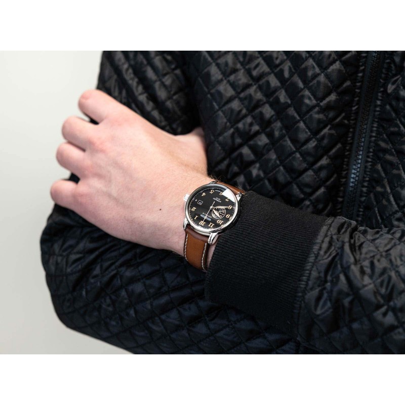 ZEPPELIN 8668-2 GRAF дуже елегантно виглядає на чоловічому зап'ясті завдяки ідеально підібраним кольорам і унікальному дизайну. Сталевийкорпус сріблястого кольорукріпиться на високоякісному ремінці з телячої шкіри коричневого кольору, що підвищує комфорт використання. Опукле мінеральне скло, що захищає циферблат, гарантує стійкість до зовнішніх факторів. Дана модель працює на основі автоматичного механізму - він буде працювати при носінні на зап'ясті. Його також можна затягнути вручну за допомогою коронки. Циферблат оснащений дисплеєм з кількома датами, який відображає дату і час у 24-годинному форматі. Фосфоресцентні стрілки дозволяють зчитувати час після настання темряви, після попереднього освітлення. Годинник може стати ідеальним подарунком завдяки стильній коробці, що додається до моделі. Zeppelin 8668-2- хороший вибір для любителів авіації та сучасних технологій. Це, безперечно, додасть характеру багатьом стилям.