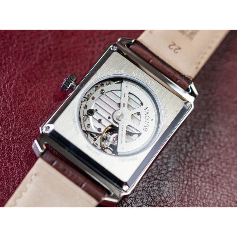 Bulova 96A268 Sutton – це поєднання класичного стилю та сучасної елегантності в найвищому її прояві. Стильний прямокутний корпус, натхненний ретро-естетикою, привертає увагу тонким блиском сталі та ідеально доповнює коричневий ремінець з високоякісної натуральної шкіри. Це поєднання надає годиннику позачасового характеру та підкреслює його вишуканий стиль. Світлий циферблат з тонким візерунком має чіткі арабські цифри, що створюють гармонійний контраст та забезпечують легке зчитування часу. Усе доповнює деталь, яка, безсумнівно, порадує любителів годинникової майстерності – відкрите серце механізму, що дозволяє спостерігати за його точною роботою. Це не просто декоративний елемент, а й тонке нагадування про традиції та технічну досконалість Bulova.