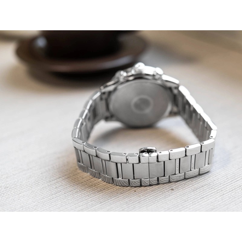 Модель Bulova 96B319 Sutton — це вишуканий годинник, створений для елегантних чоловіків, які цінують класичний дизайн і надійність. Його міцний корпус із високоякісної нержавіючої сталі елегантного сріблястого кольору привертає увагу своїм тонким блискучим покриттям. Годинник підвішений на міцний браслет, також виготовлений з нержавіючої сталі, оснащений зручною застібкою-метеликом, що забезпечує безпечне та комфортне використання. В основі Bulova 96B319 Sutton лежить точний японський кварцовий механізм, який забезпечує точний відлік часу. Чорний циферблат, захищений мінеральним склом, має елегантні сріблясті індекси, які чудово контрастують на глибокому чорному тлі. На 12 годині ви можете побачити характерний логотип Bulova, який додає унікальний стиль всьому виробу. Під логотипом розташований великий чіткий календар, який вказує поточний день місяця. Ця модель оснащена трьома меншими циферблатами, які функціонують як хронограф і секундна стрілка. Щоб було легше читати час за слабкого освітлення, тонкі стрілки годинника вкрито люмінесцентним покриттям, яке випромінює м’яке світіння під дією світла. Все це упаковано в оригінальну коробку Bulova, яка ідеально підходить як подарунок для чоловіка, який цінує елегантність і точність.