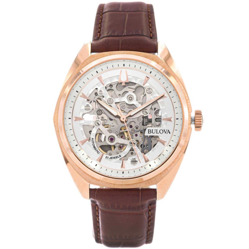 Bulova 97A175 Surveyor Skeleton Automatic виражає унікальну гармонію між традиційною елегантністю та сучасним підходом до годинникарства. Ця модель, що входить до шанованої лінійки Surveyor, була створена для тих, хто шукає годинник, що вирізняється вишуканою естетикою та захопливим внутрішнім інтер'єром. Корпус годинника, виготовлений з високоякісної нержавіючої сталі, має рожеве золото, що надає йому ніжного блиску. Витончене поєднання полірованих та сатинованих поверхонь надає всьому виробу винятково вишуканого, але сучасного вигляду. Коричневий ремінець з натуральної шкіри з елегантною застібкою-метеликом ідеально доповнює дизайн, забезпечуючи комфорт та надійну фіксацію на зап'ясті.