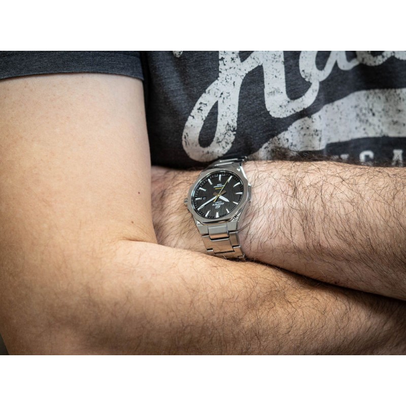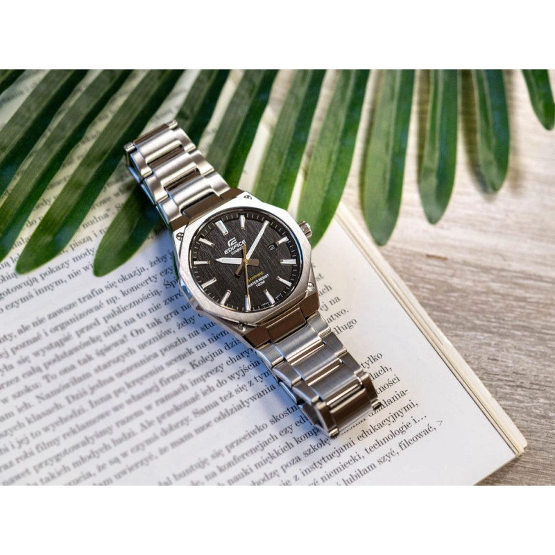 Чоловічий годинник Casio EDIFICE EFR-S108D-1AVUEF гармонійно поєднує позачасову естетику з сучасною точністю. Тонкий корпус та інтегрований браслет з нержавіючої сталі створюють цілісний, елегантний цілісний елемент у холодному сріблястому відтінку, який ідеально доповнює глибокий чорний колір циферблата. Його поверхня ретельно оброблена, що дозволяє світлу ледь помітно підкреслювати структуру індексів та тонких стрілок. Дисплей дати непомітно інтегрований у композицію циферблата, зберігаючи його читабельність та візуальний баланс. Люмінесцентне покриття покриття на індексах та стрілках забезпечує чітку видимість у темряві, не порушуючи класичного характеру дизайну. Весь годинник захищений стійким до подряпин сапфіровим склом, що ще більше підкреслює престижний характер годинника. Усередині працює точний кварцовий механізм, відомий своєю надійністю та стабільною роботою протягом тривалого часу без необхідності частої заміни батарейки. Водонепроникність до 10 бар забезпечує комфортне використання в повсякденних ситуаціях, зокрема під час водних видів спорту. Браслет, оснащений міцною застібкою-метеликом, забезпечує надійну фіксацію на зап'ясті та високий комфорт носіння. EFR-S108D-1AVUEF позиціонує себе як годинник зі збалансованим характером, де спортивна довговічність поєднується з елегантністю класичного дизайну, створюючи універсальну та позачасову модель. Оригінальна упаковка виробника доповнює комплект, роблячи годинник готовим та привабливим подарунком.