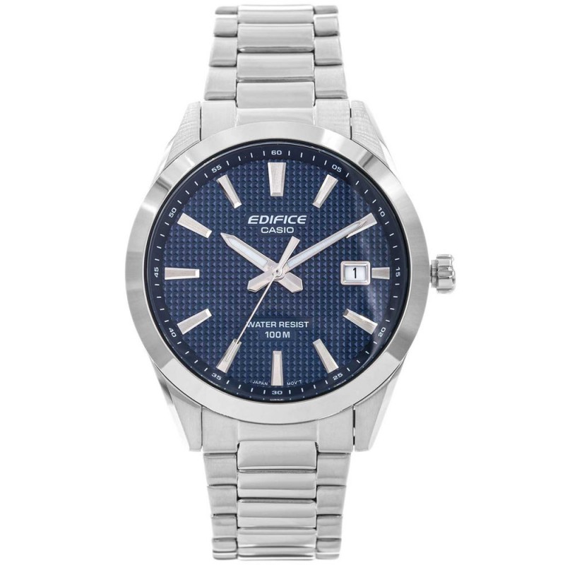 Нова версія Casio Edifice EFV-160D-2AVEF – це майстерне поєднання надійності та сучасної естетики, що виходить за рамки стандартного хронометражу та стає виразним елементом чоловічого стилю. Цей дизайн гармонійно поєднує надійну майстерність з вишуканими деталями, створюючи годинник з динамічним та рішучим характером. Конструкція з нержавіючої сталі, що охоплює як корпус, так і браслет блискучим срібним відтінком, свідчить про довговічність матеріалу та позачасову елегантність. Елементом, який одразу привертає увагу та визначає цю модель, є глибокий чорнильно-синій циферблат. Цей електризуючий колір додає свіжості та сучасності, створюючи інтригуючий та візуально насичений контраст із холодною металевою рамою. Точна текстура циферблата, разом із ретельною обробкою індексів та деталей, підкреслює увагу до деталей, що піднімає цю модель на вищий рівень естетики. Чіткість та довговічність циферблата забезпечуються мінеральним склом, відомим своєю стійкістю до щоденних подряпин, що забезпечує чудову читабельність протягом тривалого часу. Серцем годинника є точний кварцовий механізм, що гарантує точний та надійний відлік часу. Дискретно інтегрований дисплей дати підвищує його функціональність, елегантно представляючи поточний день, не порушуючи візуального балансу. Практичним аспектом, який підвищує зручність використання в будь-який час, є використання покриття Люмінесцентне покриття на стрілках. Після впливу світла цей матеріал випромінює ніжне світіння, що полегшує читання часу в умовах слабкого освітлення. Крім того, годинник може похвалитися підвищеною водонепроникністю 100 метрів, що означає стійкість до випадкових бризок, злив і навіть плавання на поверхні. Ця особливість гарантує безпеку механізму незалежно від обставин, хоча, як і у випадку з більшістю годинників з цим класом водонепроникності, не рекомендується маніпулювати кнопками під водою. Комфорт та елегантність носіння доповнюються міцним сталевим браслетом, оснащеним надійною застібкою-метеликом. Цей механізм не тільки забезпечує міцну та надійну посадку на зап'ясті, але й підкреслює ексклюзивний та цілісний характер усього дизайну. EFV-160D-2AVEF втілює баланс між елегантним дизайном та надійною функціональністю, що робить його універсальним аксесуаром, який ідеально підходить як для повсякденного, так і для більш офіційного носіння.