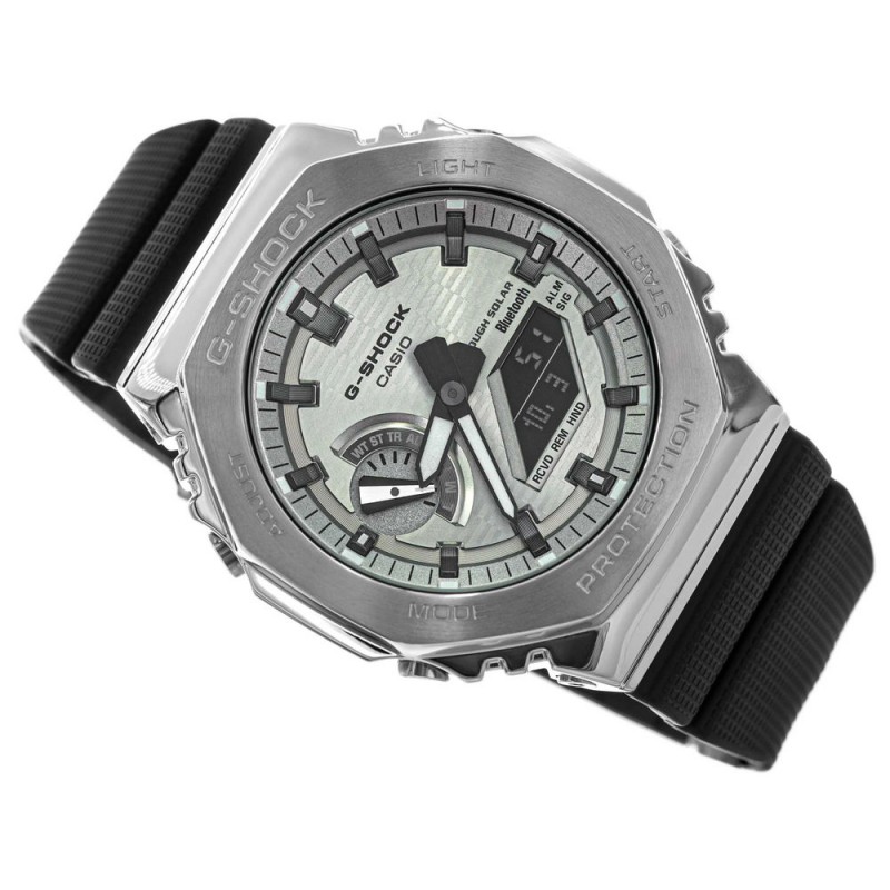 Як і кожна модель серії G-SHOCK, GBM-2100A-8BER розроблений для екстремальних умов. Він ударостійкий, стійкий до магнітних полів та водонепроникний до 20 бар, що робить його придатним для спорту, подорожей та повсякденних справ. Технологія Tough Solar дозволяє заряджати його сонячною енергією та штучним освітленням, що усуває необхідність частої заміни батареї. Годинник працює до семи місяців у стандартному режимі та до 18 місяців в режимі енергозбереження. Завдяки технології Bluetooth модель синхронізується з телефонами Android та iOS. Додаток Casio Watches автоматично налаштовує час відповідно до часового поясу, спрощує налаштування будильника та таймера, а також дозволяє вибрати одне з 300 міст. Функція пошуку телефону дозволяє знайти загублений телефон за допомогою звукового сигналу, що спрацьовує безпосередньо з годинника. GBM-2100A-8BER – це більше, ніж просто годинник – це технологічно просунутий, стильний аксесуар, що вирізняється золотим акцентом та сучасним дизайном. Годинник постачається в елегантній упаковці виробника, що робить його чудовим подарунком. Casio є одним з найбільших виробників годинників у світі, але саме серія G-Shock повністю підкорила світовий ринок. Користувачі одразу закохалися в ці спортивні годинники, чия довговічність залишається на найвищому рівні протягом багатьох років. З самого початку ці годинники стали об'єктами бажання на ринку та продовжують встановлювати стандарти та напрямки для всієї галузі донині. Серія G-SHOCK, безумовно, присвячена спортсменам, прекрасним прикладом чого є модель Casio GBM-2100A 8BER.