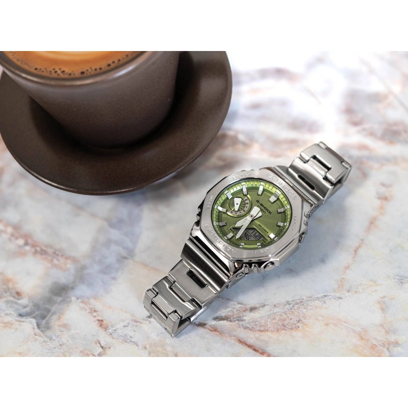 Вбудовані Секундний таймер і Таймер є безцінними інструментами для людей, які ведуть активний спосіб життя, що дозволяють точно вимірювати час і організація завдань. П'ять незалежних щоденних будильників є ідеальним рішенням для людей, які цінують пунктуальність і ефективне управління часом. Функція погодинного сигналу часу (SIG) спрощує планування, тоді як функція Mute підвищує обережність у ситуаціях, коли потрібна тиша. Цей годинник не тільки стійкий до ударів і магнітного поля, але також водонепроникний на глибині 200 метрів, що робить його ідеальним компаньйоном для плавання, дайвінгу та інших водних розваг. Міцне мінеральне скло захищає циферблат від подряпин, забезпечуючи довговічність на довгі роки. CASIO G-SHOCK GM-2110D-3AER - це пропозиція для людей, які шукають надійний, функціональний і стильний годинник. Завдяки унікальному дизайну він підходить як для повсякденного, спортивного стилю, так і для більш елегантних комплектів. Це більше, ніж годинник – це вираження характеру, довговічності та сучасності.