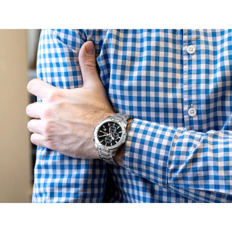 Festina Timeless Chronograph F20704/3 — унікальний чоловічий годинник, який поєднує в собі елегантність, сучасність і практичні функції, ідеально задовольняючи потреби найвимогливіших користувачів. Ця модель характеризується ретельно вишуканим дизайном і високою якістю виготовлення, що робить її ідеальною як для офіційного, так і для повсякденного стилю. Срібний корпус і браслет, виготовлені з високоякісної нержавіючої сталі, привертають увагу своєю довговічністю і точною обробкою. Контраст між полірованими і матовими поверхнями надає годиннику вишуканий і унікальний характер, підкреслюючи при цьому його універсальність. Комфорт використання забезпечується браслетом, оснащеним міцною застібкою-метеликом, що гарантує комфорт носіння та безпеку.