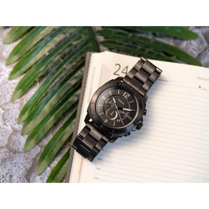 Fossil Privateer BQ2759 – це стильний чоловічий годинник, який поєднує елегантний дизайн та практичні функції. Виготовлений у класичному, універсальному чорному кольорі, він є позачасовим аксесуаром, який доповнить майже будь-який чоловічий стиль. Його серцем є точний кварцовий механізм на батарейках, що гарантує надійну щоденну роботу. Ця модель оснащена секундоміром, який може вимірювати час до 60 хвилин – практичне рішення як для спорту, так і для щоденного використання. Між 4 та 5 годинами функціональне віконце дати відображає поточний день місяця. Додатковий додатковий циферблат дозволяє відстежувати час у 24-годинному форматі – особливо корисно під час подорожей або робочих змін.