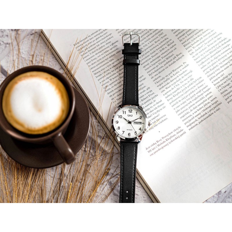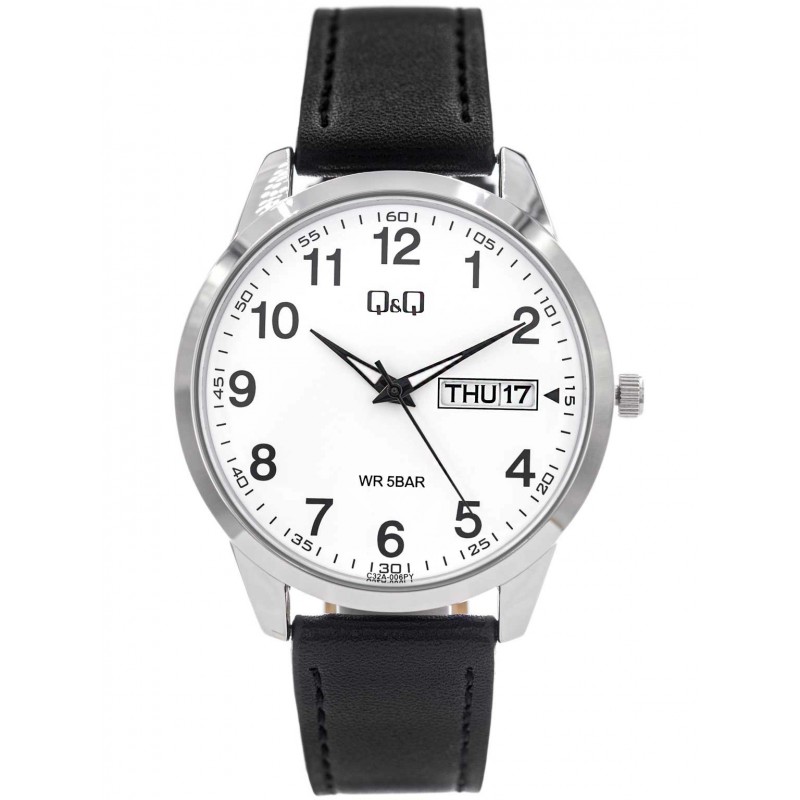 Q&Q C32A-006PYє ідеальним вибором для чоловіків, які цінують класику та елегантність. На білому циферблаті години позначені контрастними арабськими цифрами. Крім того, годинник оснащений розширеним календарем, який показує поточний день місяця та тижня. Є можливість відображення днів тижня англійською або іспанською мовами, які встановлюються за допомогою коронки. Металевий сріблястий корпус підвішений на чорному гладкому ремінці з декоративною строчкою. Q&Q C32A-006PYідеально доповнює інші елементи гардеробу, додаючи витончений акцент будь-якому стилю.