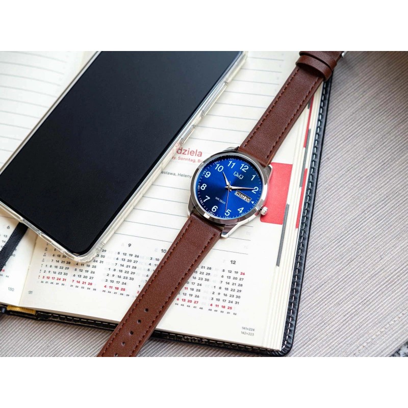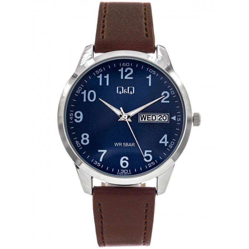 Q&Q C32A-007PYє ідеальним вибором для чоловіків, які цінують простоту та елегантність. Темно-синій циферблат чіткий і мінімалістичний. Яскраві годинникові мітки та стрілки створюють елегантний контраст із циферблатом, полегшуючи читання часу. Крім того, годинник оснащений календарем, який дозволяє відстежувати поточну дату. Все захищено мінеральним склом. Перламутровий ремінець з екошкіри не тільки міцний, але й додає всьому природного, теплого характеру. Ідеально поєднується з іншими предметами гардеробу, додаючи витонченого акценту будь-якому стилю. Q&Q C32A-007PYце аксесуар, який ідеально працюватиме в будь-якій ситуації, додаючи тонкий, але значний акцент до будь-якого стилю.
