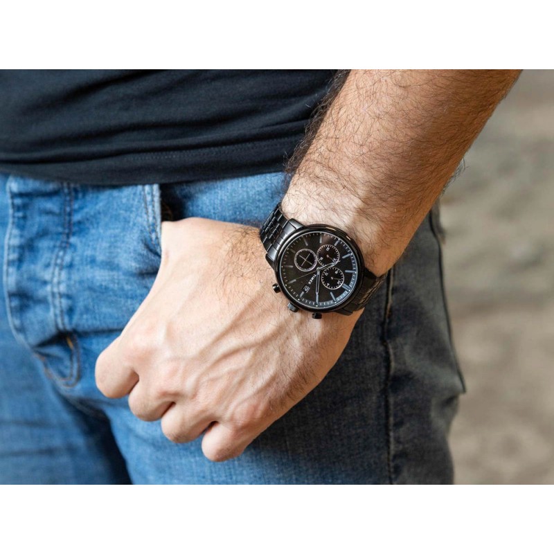Timex TW2W13400 Chicago Chronograph – це елегантний годинник із класичним дизайном, що поєднує стиль та функціональність. Чорний металевий корпус захищений задньою кришкою з нержавіючої сталі. Усередині працює змінний кварцовий механізм на батарейках. Годинник кріпиться на чорний браслет з нержавіючої сталі зі зручною застібкою-метеликом. Чорний циферблат має сірі вертикальні індекси для швидкого та зручного зчитування часу. Крім того, годинник оснащений аналоговим секундоміром, який керується бічними кнопками, та 24-годинним дисплеєм часу. Практичний дисплей дати на позначці 3 години дозволяє відстежувати поточний день місяця. Приглушені кольори та сучасний дизайн роблять Timex Chicago чудовим вибором для чоловіків, які цінують класичний стиль. Ця модель постачається в оригінальній коробці виробника, що робить її чудовою ідеєю для подарунка.