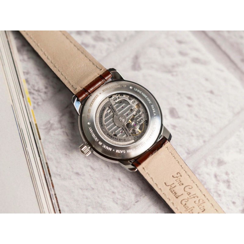 ZEPPELIN 8166-1 LZ120 Bodensee Open Heart Automatic – це годинник, що повертається до золотої ери піонерів авіації, натхненний класичним дизайном та надійними механізмами, які роками будували репутацію бренду. Створений з думкою про елегантних чоловіків, він є ідеальним поєднанням класики та сучасності, зберігаючи при цьому надзвичайну універсальність. Завдяки стриманій кольоровій палітрі, що включає відтінки бежевого, коричневого та сріблястого, цей годинник легко доповнює різноманітні стилі – від офіційних костюмів до повсякденних образів у стилі smart casual. Міцний корпус з нержавіючої сталі гармонійно доповнює високоякісний темно-коричневий шкіряний ремінець. М’який, але міцний матеріал забезпечує комфортне носіння, одночасно підкреслюючи елегантний характер моделі. Витончений кремовий циферблат годинника захищений опуклим мінеральним склом. Срібні лінійні індекси на циферблаті зберігають мінімалістичний та позачасовий характер, а стрілки, покриті елементами Люмінесцентне покриття, гарантують чудову читабельність в умовах слабкого освітлення після впливу світла. Особливо цікавою деталлю, яка вирізняє цю модель, є видимий механізм годинника. Прозора задня кришка корпусу та характерне віконце Open Heart на циферблаті дозволяють власнику милуватися точно функціонуючим автоматичним механізмом Cal. 82S5, серцем цього годинника. Оснащений 21 каменем, він забезпечує плавну та надійну роботу, використовуючи природний рух зап'ястя для живлення системи. Це означає, що годинник не потребує батарейок – його енергія походить виключно від кінетики руки власника. Для тих, хто віддає перевагу традиційним методам, механізм також можна заводити вручну за допомогою заводної головки, що забезпечує додатковий контроль над запасом ходу. Кожен годинник ZEPPELIN 8166-1 LZ120 Bodensee Open Heart Automatic постачається в елегантній, естетично привабливій коробці, що підкреслює унікальний характер годинника та робить його ідеальним подарунком. Це чудовий вибір для чоловіків, які цінують позачасовий стиль, надійність та майстерність годинникарства, якими можна милуватися щодня.