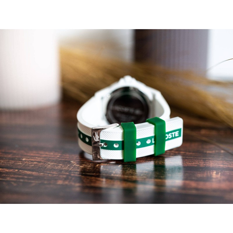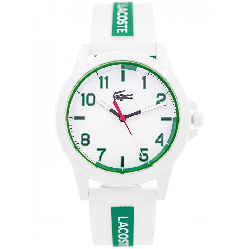 Lacoste 2020140 Teen розроблено з думкою про молодь. Завдяки універсальному розміру ідеально виглядає на маленьких руках. Білий і зелений – характерні кольори бренду Lacoste. Тому модель, безсумнівно, сподобається людям, які цінують модні аксесуари. Завдяки використанню пластику годинник ідеально лежить в руці і дуже легкий. Гладкий білий циферблат має чітко контрастні індекси у вигляді арабських цифр, які полегшують читання часу. Всередині знаходиться кварцовий механізм, який славиться своєю точністю. Модель Lacoste 2020140 поставляється в елегантній упаковці, ідеально підходить для подарунка.