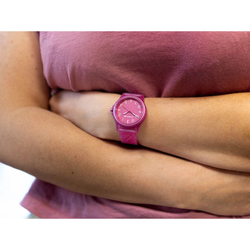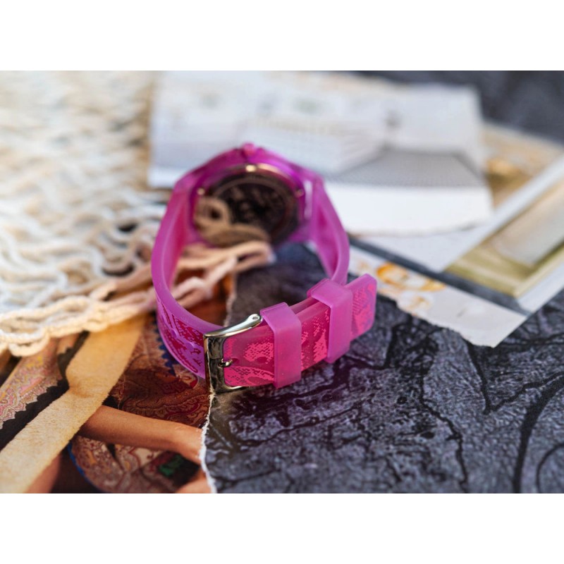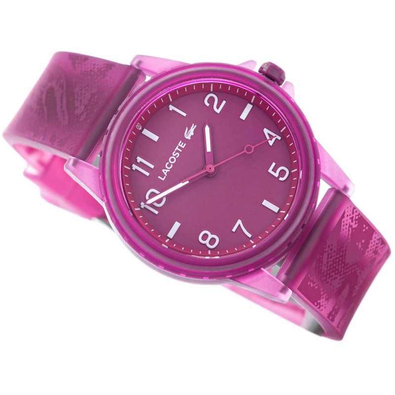 Lacoste 2020156 Raider додає ніжний, грайливий рожевий відтінок до колекції дитячих годинників, зберігаючи при цьому легкість та функціональність, характерні для всієї серії. Напівпрозорий пластиковий корпус ледь помітно розсіює світло, підкреслюючи свіжий характер дизайну, а циферблат того ж кольору створює гармонійний загальний вигляд. Чіткі білі цифри та стрілки забезпечують читабельність, що полегшує читання часу навіть для малюків, які тільки вчаться визначати час. Модель кріпиться на гнучкому рожевому ремінці з міцного пластику, прикрашеному силуетами крокодилів. Завдяки класичній пряжці ремінець надійно сидить на маленькій руці, забезпечуючи комфорт під час повсякденних справ. Задня кришка корпусу зі сталі, що закручується, зміцнює конструкцію та захищає точно працюючий кварцовий механізм, який забезпечує пунктуальність у будь-якій ситуації. Мінеральна скло захищає циферблат від подряпин, гарантуючи, що годинник довше зберігатиме свої яскраві кольори та естетику. Lacoste 2020156 Raider – це легка, зручна та чарівна модель, яка ідеально відповідає потребам юних власників. У комплекті є коробка виробника, яка ідеально підходить як для зберігання, так і для елегантного подарунка.