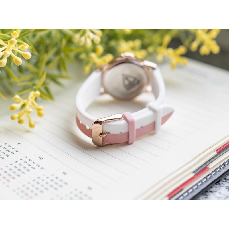 Дитячий годинник Tommy Hilfiger 1720015 – це стильна та функціональна пропозиція, створена з урахуванням потреб наймолодших. Ця модель вирізняється витонченим сталевим корпусом, який поєднується з легким біло-рожевим ремінцем з високоякісного пластику. Завдяки своїй гнучкій конструкції ремінець ідеально підходить до маленького зап'ястя дитини, забезпечуючи комфорт протягом усього дня – без тиску та подразнення. Срібний циферблат має **читабельні годинні мітки**, що дозволяє легко читати час навіть наймолодшим користувачам. Корпус червоно-золотистого кольору чудово доповнює двоколірний ремінець, що нагадує солодкий зефір – це ніжне та приємне поєднання кольорів обов'язково сподобається дітям.
