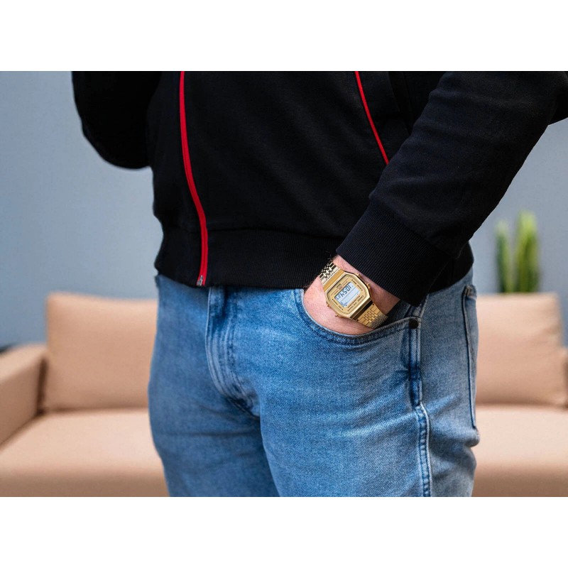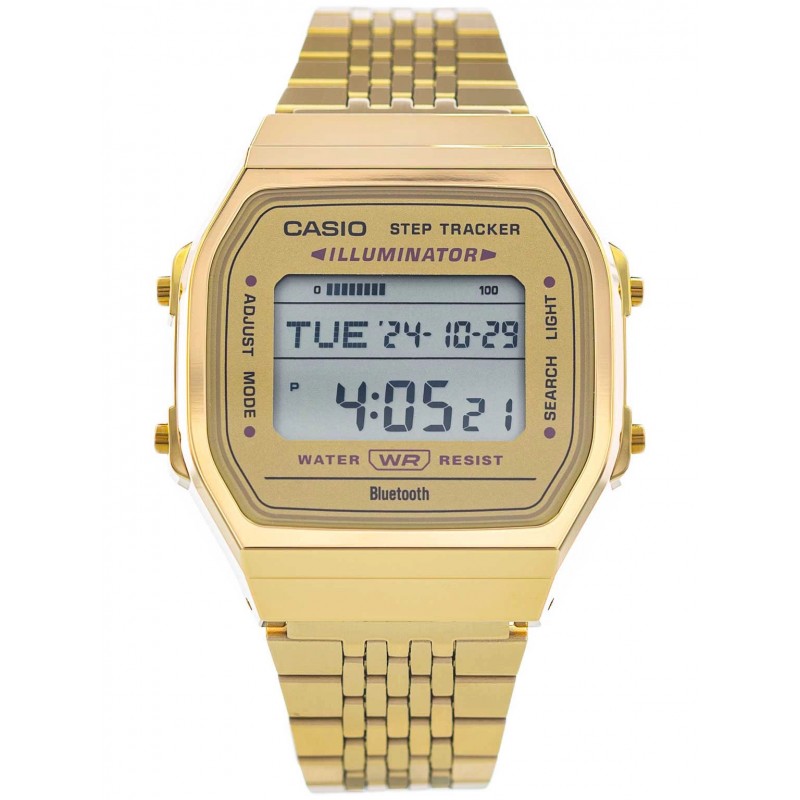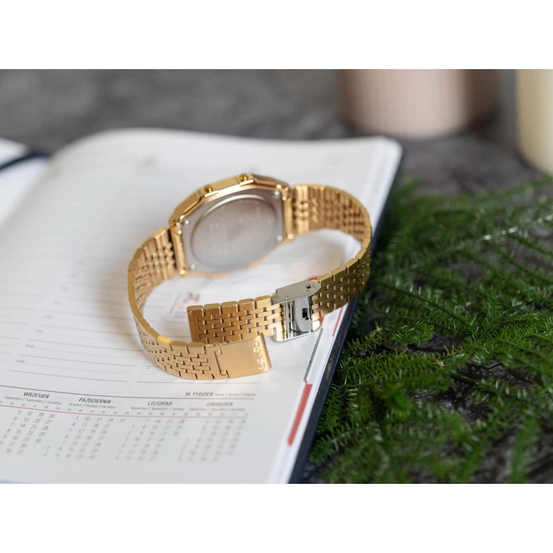 Casio ABL-100WEG-9AEF – це елегантний годинник із серії Casio Vintage, який виділяється своїм унікальним золотистим покриттям, що надає йому універсального та позачасового характеру. Золоті годинники протягом багатьох років символізують престиж і елегантність, і ця модель ідеально вписується в ці традиції, поєднуючи класичний ретро-дизайн з сучасними технологіями. Тонкий корпус і міцний браслет повністю виконані у відтінках золота, що надає годиннику розкішного вигляду та водночас робить його універсальним – він ідеально вписується як в елегантний, так і в повсякденний стиль. ABL-100WEG-9AEF - це не тільки красиве доповнення, але й функціональний гаджет. Годинник оснащений точним кварцовим механізмом з живленням від батарейок, що гарантує точність і надійність. Акрилове скло захищає цифровий дисплей, який контрастує з теплим кольором золотого корпусу, підкреслюючи сучасний стиль годинника. Завдяки зручній системі регулювання G-Link золотий браслет легко підлаштовується під зап'ястя, забезпечуючи комфортне носіння протягом усього дня. Однією з головних переваг цієї моделі є її розширений функціонал. Годинник пропонує підключення Bluetooth, уможливлюючи синхронізацію з телефоном, що дозволяє використовувати такі засоби, як Крокомір, який допомагає контролювати фізичну активність. Модель ABL-100WEG-9AEF також має п'ять програмованих щоденних будильників, точний б/у таймер і автоматичний календар, який незалежно враховує різну тривалість місяця. Завдяки помаранчевому світлодіодному підсвічуванню годинник забезпечує відмінну читаність навіть при слабкому освітленні, а користувач може регулювати тривалість підсвічування відповідно до своїх уподобань. Функція Відключення звуку дозволяє вимкнути звуки клавіатури, що корисно в ситуаціях, які вимагають обережності, наприклад на зустрічах чи офіційних заходах. Навіть якщо звук вимкнено, будильники та таймери залишаються активними. Ця модель не тільки стильна, але і практична. Індикатор стану акумулятора повідомляє, коли його потрібно замінити, забезпечуючи, щоб ваш годинник завжди був готовий до роботи. Завдяки інтеграції з мобільним додатком годинник можна легко налаштувати під індивідуальні потреби користувача. Функція Phone Finder допоможе вам знайти втрачений телефон, а опція Time & Place дозволяє записати місце та час, що ідеально підходить для тих, хто любить документувати свої подорожі. Золотий ABL-100WEG-9AEF також є чудовим вибором для тих, хто часто подорожує, завдяки функції світового часу, яка дозволяє швидко перевіряти час у різних часових поясах. Завдяки незмінному золотому покриттю цей годинник завжди буде актуальним, незалежно від змін модних тенденцій, забезпечуючи елегантний аксесуар на довгі роки.