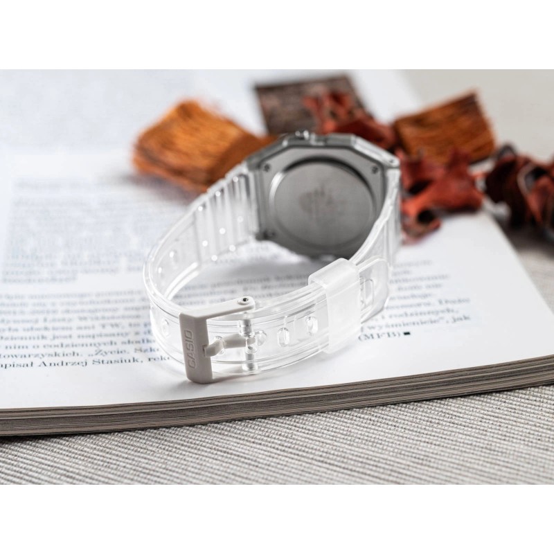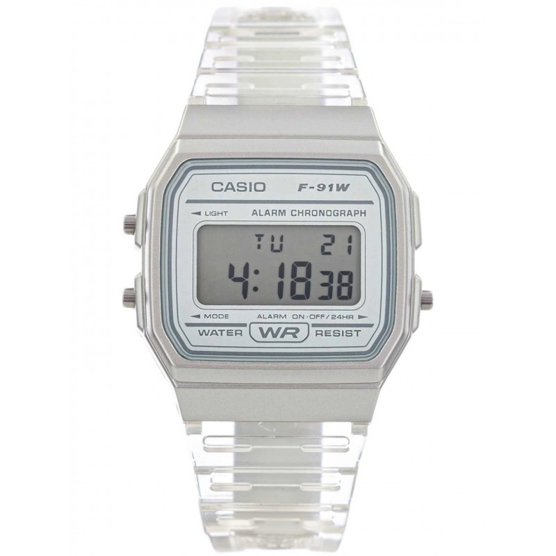 Casio F-91WS-7EF — ще одна нова версія легендарної моделі годинника, цього разу в елегантному виконанні зі сріблястим корпусом і прозорим напівпрозорим ремінцем. Цей годинник поєднує в собі класичну функціональність із сучасним і тонким дизайном, ідеально вписуючись в естетику мінімалістичних, але виразних аксесуарів. Срібний корпус надає годиннику елегантності, а прозорий ремінець додає легкості та сучасності, створюючи гармонійну та сучасну композицію. Модель F-91, яка вважається культовою класикою, полюбилася любителям цифрових годинників і ретро-техніки. F-91WS-7EF зберігає класичні риси цієї серії – компактні розміри, малу вагу та зручність носіння. Прямокутний корпус і мінімалістичний стиль виділяють його серед інших годинників. У цій версії Casio представила більш сучасний вигляд із сріблястими акцентами, зберігаючи при цьому свій спортивний характер. Позитивний дисплей забезпечує легке зчитування часу та інтуїтивно зрозуміле керування, що робить його ідеальним повсякденним супутником як для міського, так і для спортивного образу. Цей годинник підходить різним віковим групам, від молодших користувачів до досвідчених шанувальників ретро, що робить його універсальним вибором для різноманітних випадків. Завдяки елегантному, але простому вигляду він добре поєднується з багатьма стилями – від повсякденного до офіційного. З точки зору функціональності, Casio F-91WS-7EF пропонує все, чого ви очікуєте від цієї класичної моделі. Він оснащений точним кварцовим механізмом, що живиться від змінної довговічної батареї. Крім того, він має ряд практичних функцій, таких як календар, секунди, можливість відображення часу в 24-годинному форматі та будильник, що робить його стильним і функціональним. Casio F-91WS-7EF є ідеальним вибором для тих, хто шукає елегантний, але функціональний годинник, який поєднує класичні цінності з сучасним легким дизайном. Його витончений сріблястий вигляд і прозорі деталі роблять його унікальним годинником, який неодмінно приверне увагу.