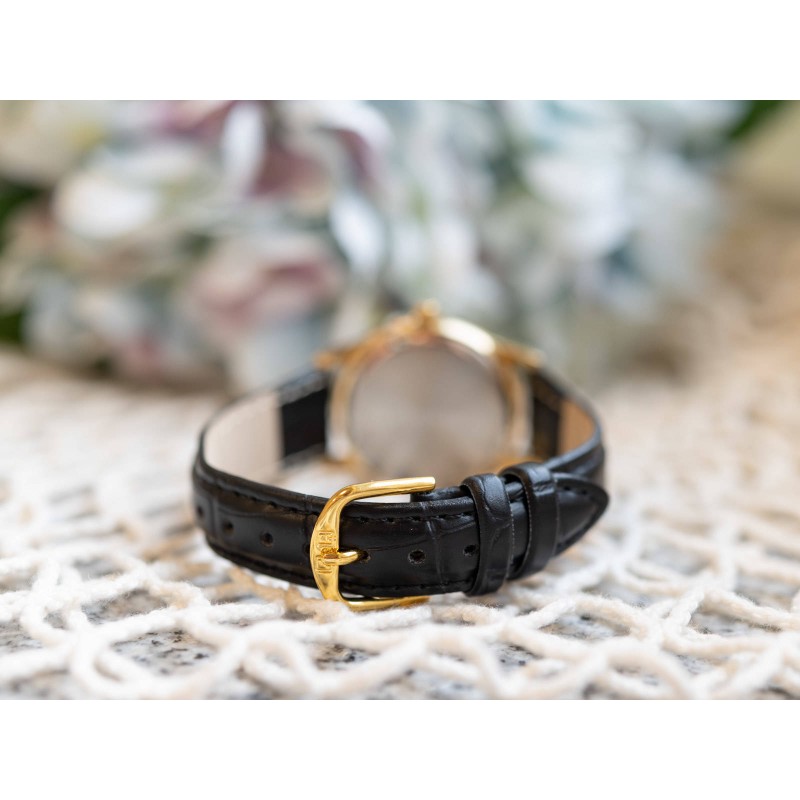 Q&Q C215J104Y неодмінно сподобається любителям дрібних прикрас. Золотий корпус поєднується з чорним ремінцем з екошкіри. Всередині знаходиться японський кварцовий механізм - MIYOTA, відомий своєю міцністю і точністю. Циферблат має добре помітні індекси у вигляді арабських цифр. Циферблат виглядає виразно і захищений стійким до подряпин мінеральним склом. Завдяки своїм невеликим розмірам модель C215J104Y виглядає дуже акуратно і естетично на маленькому жіночому зап'ясті. Продумані, поєднані кольори дозволяють годиннику вдало доповнити як повсякденний, так і офісний стиль.