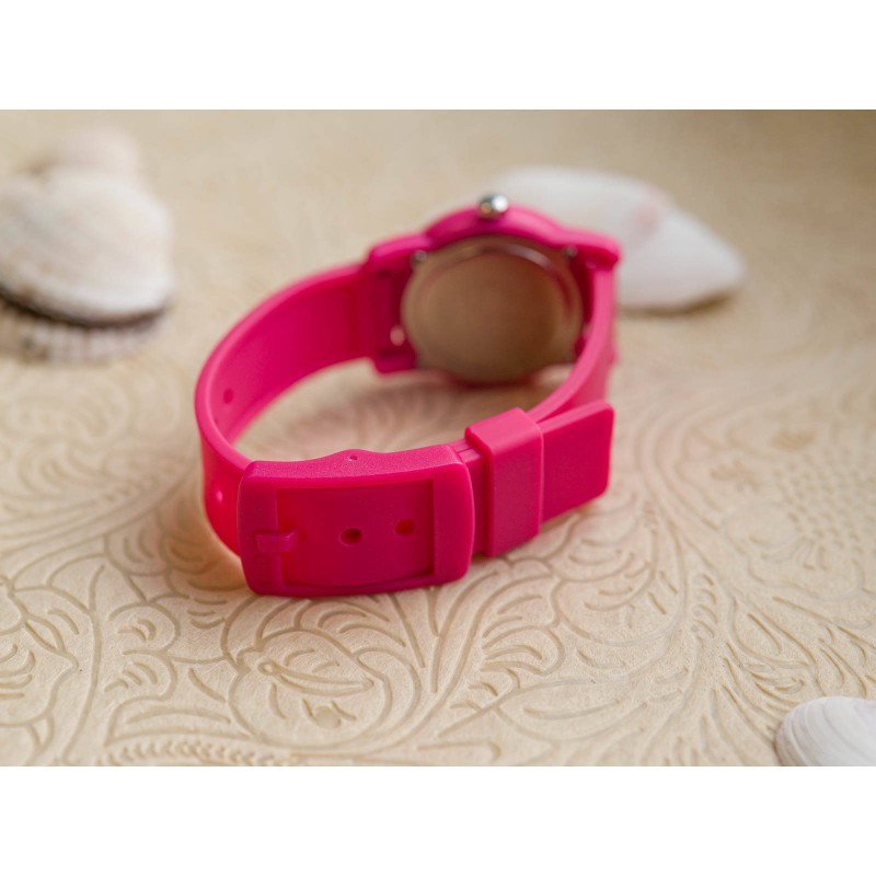 Q&Q VR41J002Y - ідеальний вибір для першого годинника для дівчинки. Час позначено на білому циферблаті кольоровими арабськими цифрами з хвилинами над ним, щоб було легше читати поточний час. Рожевий конверт пов’язаний зручним ремінцем, який закінчується пряжкою з логотипом бренду. Клас водонепроникності 100М дозволяє плавати з годинником у руці , що є надзвичайно важливим параметром при виборі годинника для дитини.