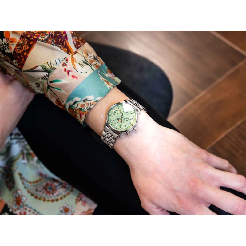 Жіночий годинник ZEPPELIN 8637M-4 Marine – це гармонійне поєднання класики та сучасності, створене для жінок, які цінують вишуканий стиль та надійність. Ця елегантна модель вражає своїм точним кварцовим механізмом, що гарантує пунктуальність та комфорт щоденного носіння. Унікальний фісташковий циферблат привертає увагу та надає всьому виробу неповторного характеру. Ретельно виготовлені срібні стрілки та індекси ідеально доповнюють ніжно мерехтливий браслет з високоякісної нержавіючої сталі. Його складне плетіння гарантує, що годинник ідеально сидить на зап'ясті, забезпечуючи комфорт протягом усього дня.