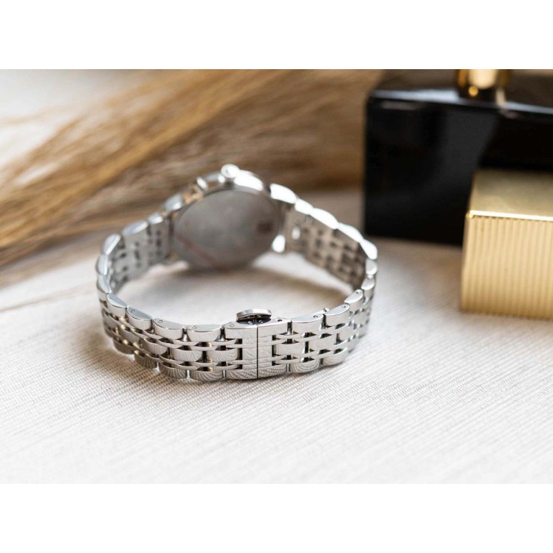 Функціональність тут поєднується з естетикою – циферблат збагачений чітким віконцем дати, яке вказує як день місяця, так і день тижня, що полегшує організацію щоденних завдань. Ще однією незаперечною особливістю є індикатор фази місяця, розташований о 6 годині. Ця унікальна деталь додає годиннику неповторного шарму, роблячи його не лише практичним аксесуаром, але й справжньою ювелірною прикрасою. Весь виріб захищений міцним мінеральним склом, стійким до подряпин та щоденного зносу, що гарантує, що годинник довго зберігатиме свій ідеальний вигляд. Модель ZEPPELIN 8637M-4 Marine – чудовий вибір для жінок, які шукають годинник, що поєднує в собі позачасову елегантність із сучасними функціями. Додатковою перевагою є елегантна фірмова коробка, в якій упакований годинник, що робить його ідеальною ідеєю для унікального подарунка, що підкреслює клас та хороший смак одержувача.