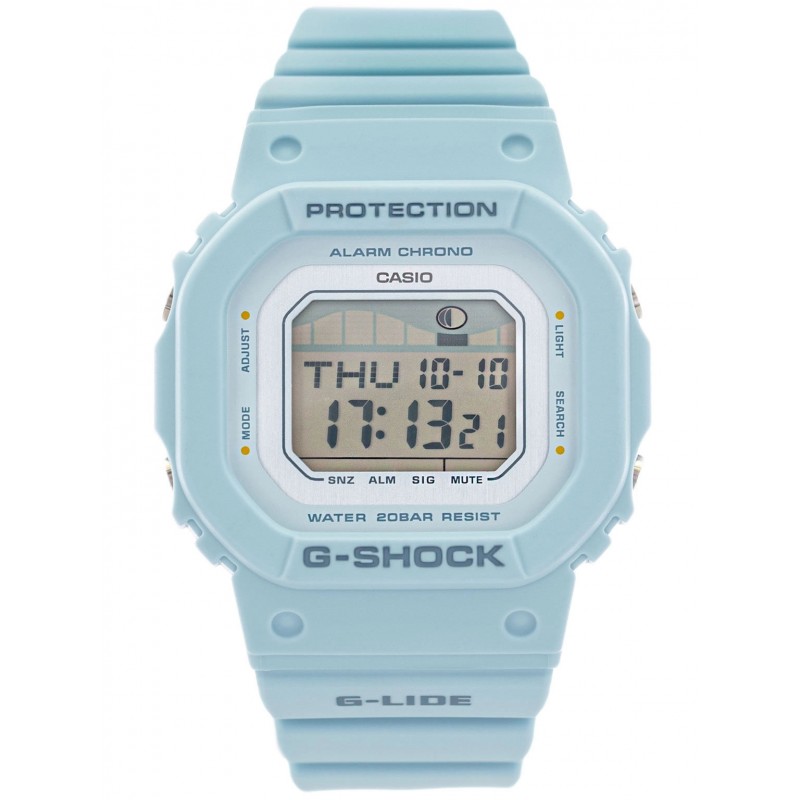 Casio G-SHOCK GLX-S5600-2ER — це модель, створена для жінок, які шукають годинник, який поєднує в собі естетичний спортивний дизайн із функціональністю під час активного відпочинку на воді. Тонкий синій корпус привертає увагу своїм витонченим, але сучасним виглядом, підкреслюючи унікальний стиль власника. Надійна робота та водонепроникність 20 БАР роблять цей годинник ідеальним супутником як для щоденного використання, так і для складніших пригод, таких як плавання, підводне плавання чи дайвінг. Годинник оснащений читабельним цифровим циферблатом, який пропонує широкий спектр практичних функцій. Завдяки будильнику ви завжди можете бути в курсі важливих моментів, функція світового часу дозволяє відстежувати час у кількох часових поясах, що надзвичайно корисно для тих, хто подорожує. Крім того, вбудований монітор припливів і фази місяця надають важливу інформацію для любителів водних видів спорту, таких як серфінг або вітрильний спорт. Незалежно від умов освітлення циферблат залишається читабельним завдяки функції підсвічування, що підвищує комфорт використання навіть вночі. Ремінець з пластику гарантує легкість і комфорт носіння, ідеально підлаштовуючись під форму зап'ястя, що додатково підвищує комфорт при тривалому використанні. Casio G-SHOCK GLX-S5600-2ER - це не тільки стильний аксесуар, але й функціональний гаджет, який збагатить будь-яку пригоду, як на пляжі, так і на воді, забезпечуючи повний контроль над часом і необхідними даними під час активності.