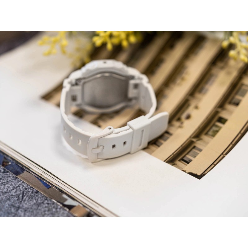 Casio GMA-P2110-7AER – це жіночий аналого-цифровий годинник лінійки G-SHOCK, що поєднує класичну міцність з яскравим, сучасним стилем. Білий корпус і ремінець надають годиннику легкості та свіжості, а тонкі розміри ідеально підходять для вужчих зап'ясть. Восьмикутне кільце навколо циферблата, також білого кольору, ледь помітно відбиває світло, створюючи елегантний, мінімалістичний акцент. Аналогово-цифровий дисплей відображає години та хвилини на стрілках, а також повні цифрові дані – години, хвилини, секунди, день і місяць – з можливістю перемикання стрілок за допомогою функції Hand Shift, щоб вони не затьмарювали показання. Мінеральна скло захищає циферблат, а покриття Люмінесцентне покриття збільшує видимість стрілок у темряві після впливу світла. Годинник оснащений дисплеєм світового часу з 31 часовим поясом та 48 містами, автоматичним переходом на літній час, секундоміром з точністю до 1/100 секунди та таймером з діапазоном до 24 годин та часом початку в секундах, хвилинах або годинах. П'ять щоденних будильників і щогодинний сигнал допоможуть вам спланувати свій день, а функція вимкнення звуку вимикає звуки кнопок. Подвійне світлодіодне підсвічування забезпечує повну читабельність аналогового та цифрового дисплеїв за будь-яких умов. Ударостійкий та водонепроникний до 200 метрів, годинник підходить для плавання, дайвінгу та активного відпочинку. Використання біорозробленої смоли в ремінці та корпусі підкреслює екологічний підхід бренду та зменшує його вплив на навколишнє середовище. Завдяки яскравим кольорам, мінімалістичній естетиці та вишуканим деталям, GMA-P2110-7AER поєднує функціональність G-SHOCK з витонченим повсякденним стилем, пропонуючи елегантне доповнення до будь-якого гардеробу. Casio є провідним виробником годинників. Колекція цього японського гіганта включає серію годинників CASIO G-SHOCK, що характеризуються високою міцністю, ударостійкістю та спортивним характером. Технології компанії в поєднанні з матеріалами найвищої якості принесли серії світовий успіх. Багатство кольорів, використання різноманітних матеріалів та широкий спектр функцій – це елементи, які справляють сильне враження на покупців при виборі годинника. Годинник Casio GMA-P2110-7AER є ідеальним прикладом ідеології виробника, пов'язаної з цією серією.