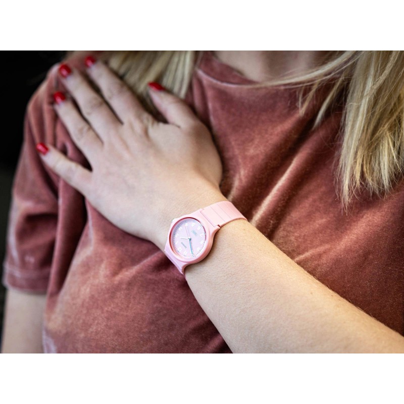 CASIO LQ-24B-4BEF — це жіночий годинник, який вражає тонким поєднанням класичної форми та виразного сучасного характеру. Його легка конструкція та компактний розмір роблять його надзвичайно зручним для носіння протягом усього дня. Виготовлені з міцного пластику, ремінець і корпус гарантують комфорт використання та стійкість до щоденних викликів. Циферблат насиченого рожевого кольору надає йому оригінальний вигляд, а білі арабські цифри забезпечують високу читаність і чіткість показань. Завдяки чітко видимим стрілкам зчитування часу відбувається швидко та інтуїтивно зрозуміло. Все це захищено акриловим склом, яке при необхідності можна легко відполірувати, повернувши йому бездоганний зовнішній вигляд. Надійний кварцовий механізм забезпечує точне вимірювання часу, а змінна довговічна батарея забезпечує тривалу роботу без необхідності частого обслуговування. Дана модель виготовлена з приємних до шкіри матеріалів, що робить її безпечною для людей, схильних до алергії. Його яскравий колір і мінімалістичний дизайн ідеально підходять як для повсякденного, так і для більш жіночного стилю. Це чудовий вибір для будь-якої жінки, яка шукає легкий, надійний і естетично привабливий щоденний годинник, а також для молодих користувачів, які хочуть почати свою пригоду з аналоговими годинниками. CASIO LQ-24B-4BEF поєднує в собі комфорт, функціональність і відтінок виразності, додаючи характеру будь-якому стилю.