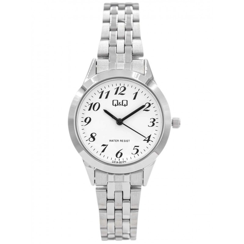 Q&Q C01A-001PY стане чудовою пропозицією для жінок, які шукають класичний годинник, на якому не проблема зчитати час. Усередині є японський кварцовий механізм - MIYOTA, що живиться від змінної батареї. Білий гладкий циферблат захищений ударостійким мінеральним склом. Чіткі годинникові мітки та стрілки ідеально контрастують із білим фоном. Срібний браслет не тільки міцний, але й елегантний. Q&Q C01A-001PYє ідеальним вибором для жінок, які цінують простоту та точність і бажають носити годинник, який є таким же стильним, як і функціональним.